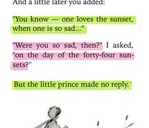 In one of them I shall be laughing. You become responsible forever for what you have tamed. You see one loves the sunset when one is so sad.