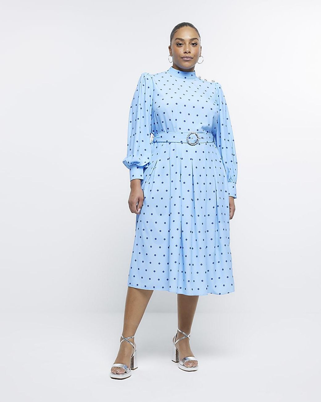 River Island Plus Blue Spot Long Sleeve Midi Dress Lyst Uk